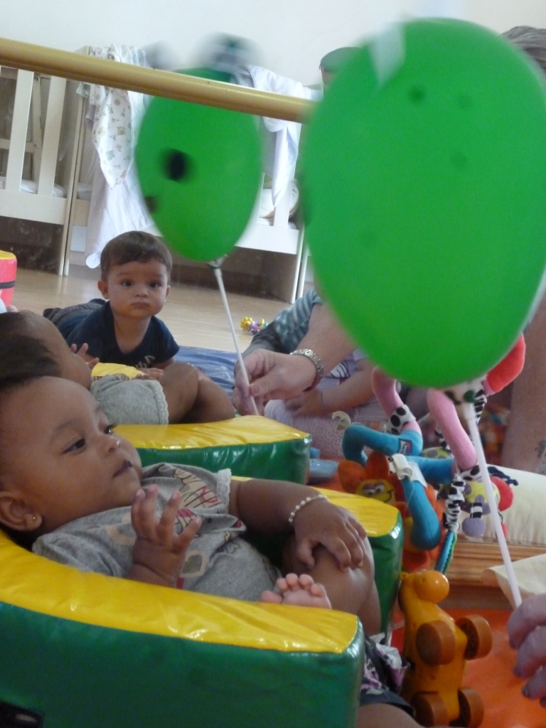 Atividades realizadas com as turmas do CEI utilizando diferentes formas de contar histórias, como com fantoche, dedoche, com balões, com tinta.